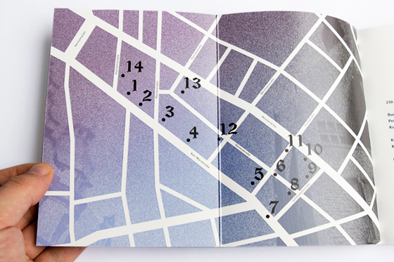 230 000 cm corresponds to the diameter of the Quartier Donau, in the district of Neukölln in Berlin. The book resulting from this project brings together a collection of photos and stories that happen between spring and autumn 2013, within this diameter. The guiding thread of the project is the relationship between memory, subjectivity and experience of many residents of the neighborhood and its relationship with the artists who work in it. The process is divided into two stages. During the spring we invited several artists with Ateliers in the neighborhood, to take pictures of certain places that seem peculiar to them, in relation to the convivial in public space. For the "48 Hours Neukölln Festival", we printed the photos in b&w and exhibit near the places where they were originally taken. In our Atelier we distributed a map to the Festival audience, so they could see the photos on a walk around the block. In the second stage of the project, we invite artists to write narratives or free verses, that related to the images produced. The compilation of works was published with the help of Quartiermanagement, and launched into a night of readings in Karl Marx Studio during the Fall Festival, Nacht und Nebel (Night and Fog). The result is a kaleidoscopic image of DonauKiez, narrated by people of different cultures, interests and experiences in the social space of the quartier. The book reflects the diverse and complex surface of one of the most multi-cultural neighborhoods of Berlin.