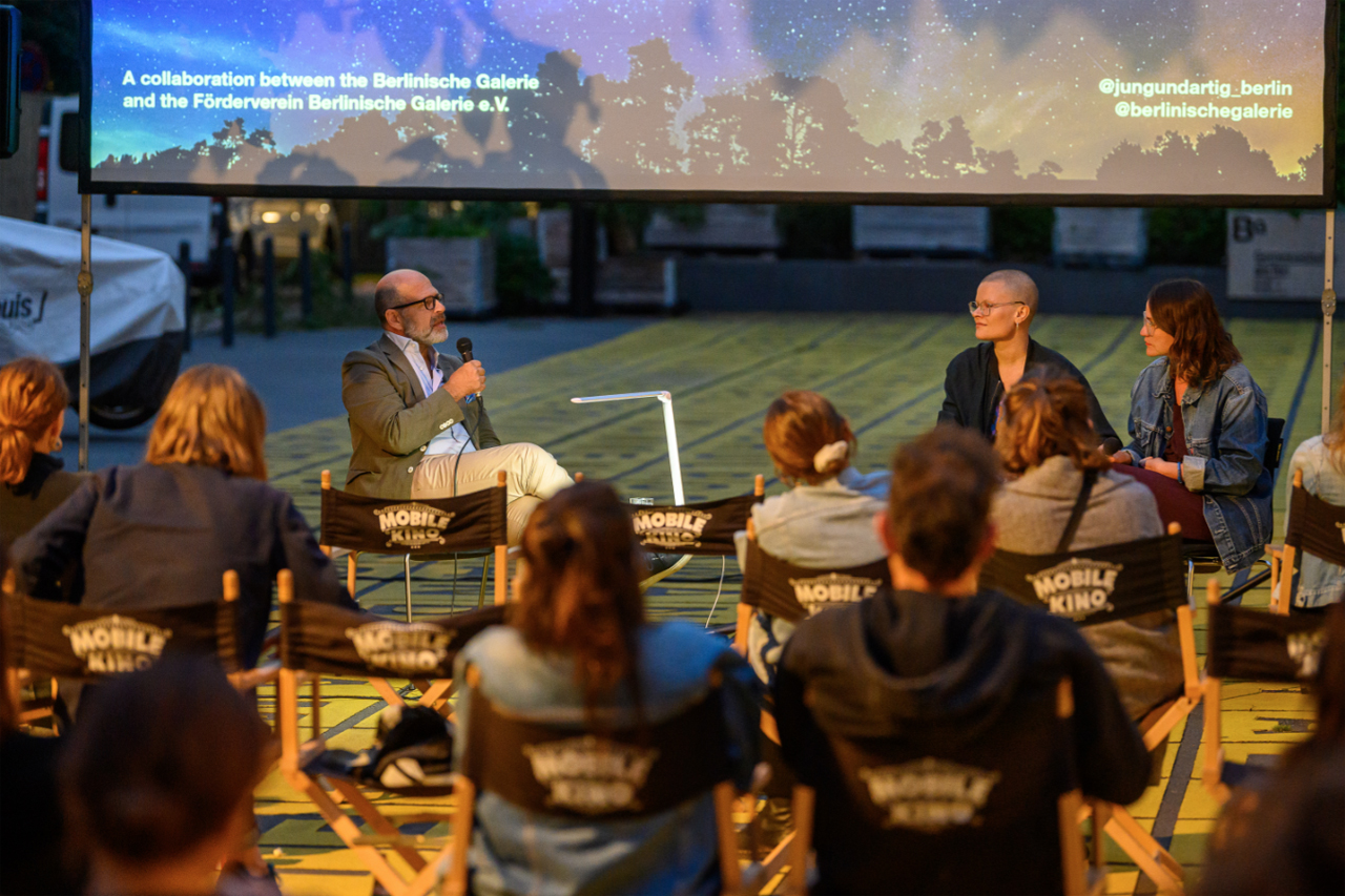 Young and Artful - the young museum friends presented video art from the program of the IBB video room of the Berlinische Galerie: With popcorn and cool drinks, the museum forecourt became an open air cinema.