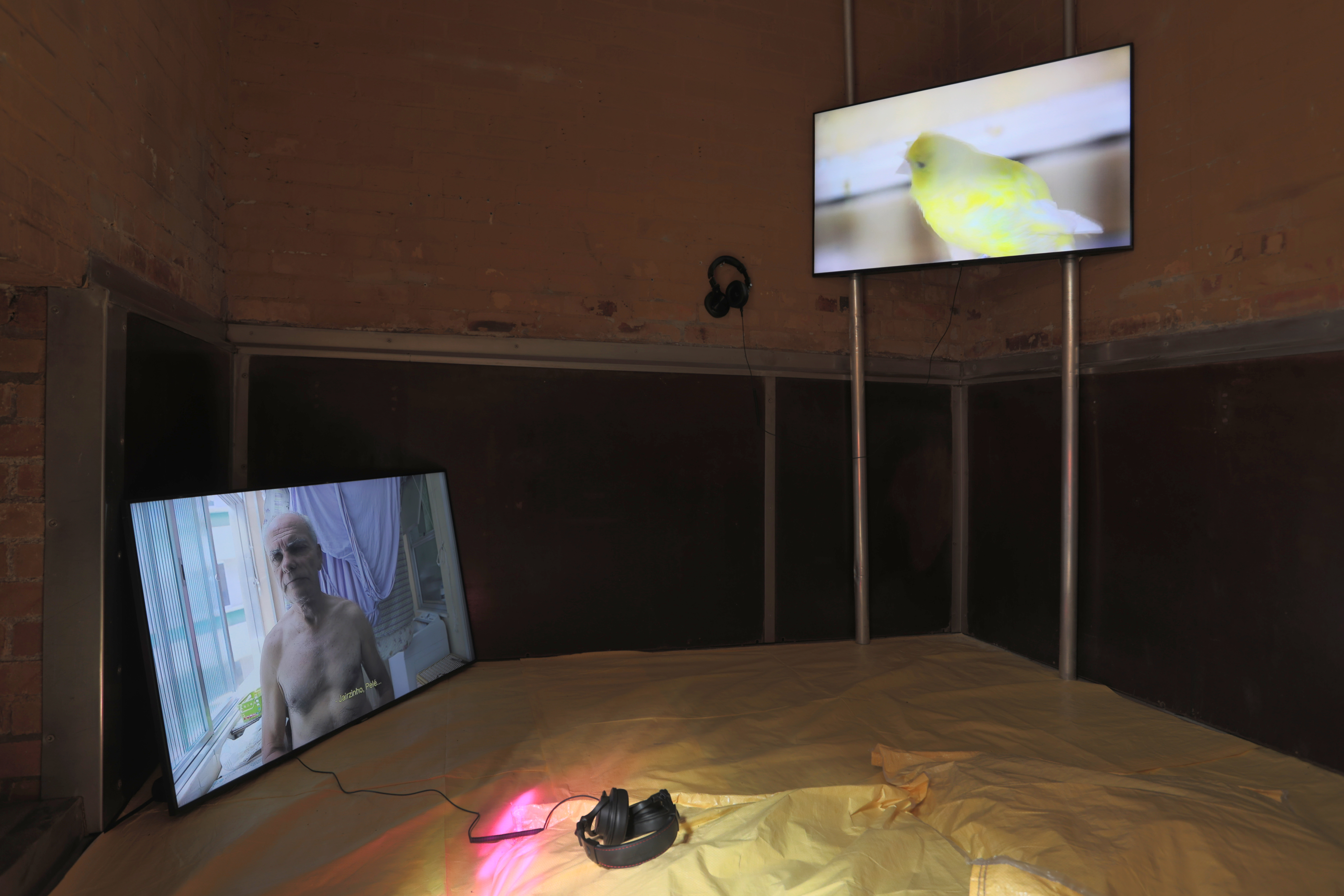 What can you do with a hole in a valley? Where can you wander when the earth no longer holds? Do the landscapes of non-cities and their seductive call to solitude remain compelling in times of urban disintegration? What might be learned and unlearned in the augmented topographies of such ruined landscapes? How to wander over and under such unsteady ground? Barbara Marcel’s project "Golden Tone" is derived from her research into the historic and cultural landscape of Harz, the western mountain region of Germany, where many of the mining technologies of mineral soil extraction were first developed and later exported across the world. The video installation reflects on the intersections of the past, present and future of this anthropogenic landscape through the particular history of the breeding, training and trading of canary birds in the region. In a video assemblage featuring hands and machines, silver and serinettes, contaminated heavy metal hills and falling spruce trees, touristic tours and intimate interviews, the iconic landscape of the German Harz gradually reveals its many hybrid layers, giving way to an open field of transformative sonic flights. “Golden Tone” is a film about the Harz Roller canary birds, the domestication of mines and the queering of nature.